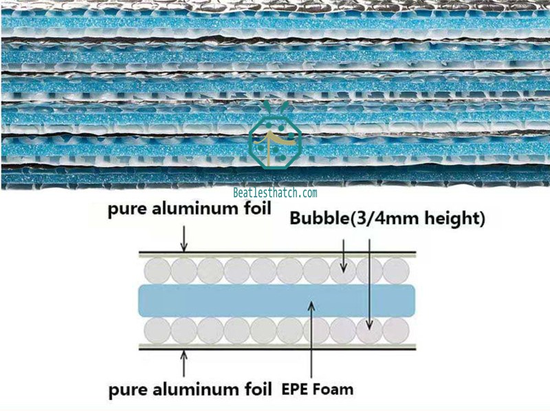 熱帯地方の茅葺き屋根用アルミ製ダブルバブル&EPEフォーム断熱材